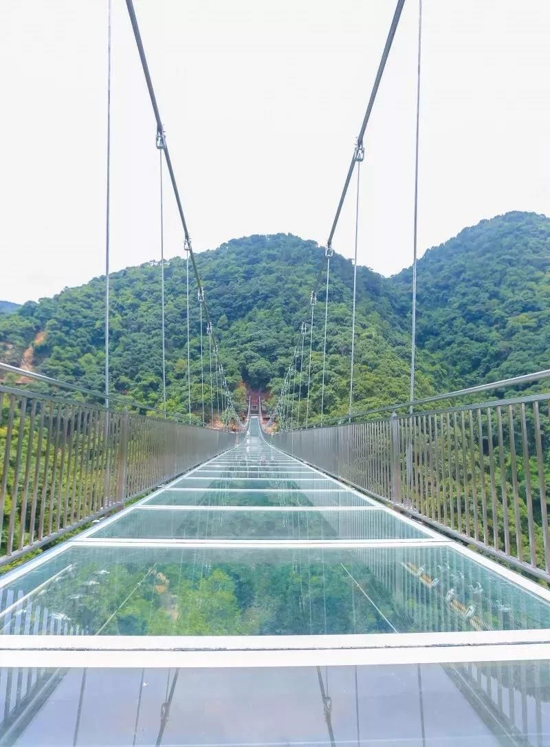 古龍峽玻璃橋全長329米,平均寬度3.8米,最寬處6.8米,橋上2個港灣式透明觀景凸臺位于最寬處,和UFO玻璃平臺遙相呼應(yīng)。作為世界最寬的觀瀑玻璃橋,在國內(nèi)第一家采用超大面積玻璃,橋面可以容納5人并行,也可從容地拍下全身照,面積達(dá)40平方米港灣式觀景凸臺設(shè)置了5D聲光電特效裝置,感應(yīng)到游客經(jīng)過時,會出現(xiàn)“山崩地裂”“玻璃破碎”等奇幻效果。經(jīng)浙江大學(xué)土木工程系測試,玻璃橋靜態(tài)負(fù)載可超過700人。