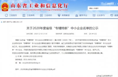 根據(jù)《山東省“專精特新”中小企業(yè)認(rèn)定管理辦法》(魯工信發(fā)〔2020〕7號)、《關(guān)于組織申報(bào)2020年度山東省“專精特新”中小企業(yè)和對往年“專精特新”中小企業(yè)進(jìn)行復(fù)核的通知》等文件精神,省工業(yè)和信息化廳組織開展了2020年度省級“專精特新”中小企業(yè)評選工作。經(jīng)主管部門推薦、專家評審等程序,確定我公司為2020年度省級“專精特新”中小企業(yè)。