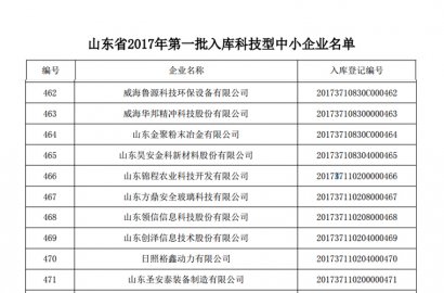 2018年1月24日,山東省科技廳發(fā)布公告,公布山東省2017年度第一批入庫(kù)科技型中小企業(yè)名單,我公司成功入選。